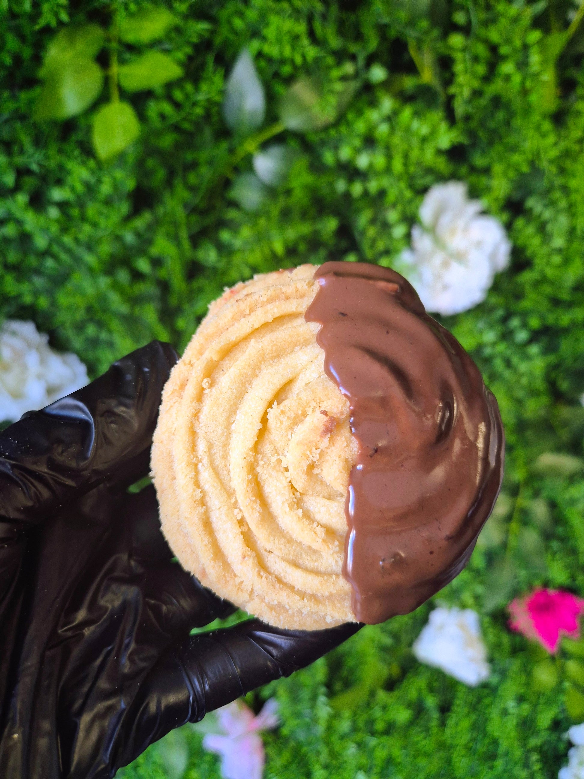Melt-in-the-mouth shortbread sandwiched with cherry compote and dipped in chocolate — a delicate, buttery classic with a festive twist.